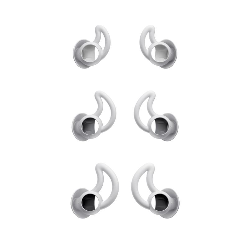 Nu sunt două urechi la fel! Deci, pentru a se potrivi cu cele mai multe dimensiuni și forme și pentru a fi confortabile și pentru cei care dorm pe o parte, am luat în considerare scanări tridimensionale ale geometriei urechii și le-am folosit pentru a crea o cască in-ear doar puțin mai mare decât un bob de mazăre. Căștile sleepbuds vin cu vârfuri StayHear+ de 3 dimensiuni (S/M/L), proiectate pentru a se potrivi perfect cu partea superioară a urechii. Așa că puteți să vă ghemuiți în pernă, să vă întoarceți de pe o parte pe alta sau să vă întindeți – căștile Bose sleepbuds vă vor rămâne confortabil și delicat în urechi toată noaptea.