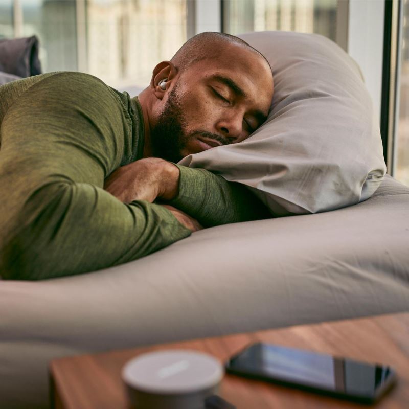 În locul muzicii, căștile Bose sleepbuds redau sunete liniștitoare care maschează zgomotul în timpul nopții. Și, cum suntem primii care recomandă utilizarea tehnologiei de reducere activă a zgomotului, am descoperit că, în timpul somnului, tehnologia de mascare a zgomotului este o soluție mai potrivită pentru gama sunetelor care nu ne lasă să dormim – în special cele din spectrul vocal. Așa că tot ce veți auzi este un sunet liniștitor care vă ajută să adormiți și să dormiți nederanjați.