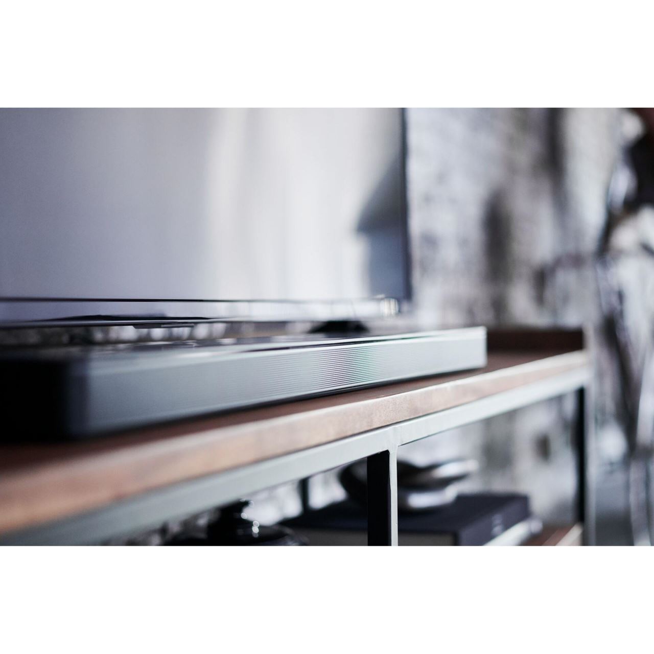 Acest soundbar elegant este făcut să fie auzit, nu văzut. De aceea am construit difuzoare special proiectate pentru ca soundbar-ul Bose 500 să fie aproape imposibil de subțire, fără a face compromisuri din punct de vedere acustic. Având numai 5 cm înălțime, se potrivește perfect sub ecranul TV-ului, astfel încât nici să nu știți că e acolo – până când nu îl auziți!