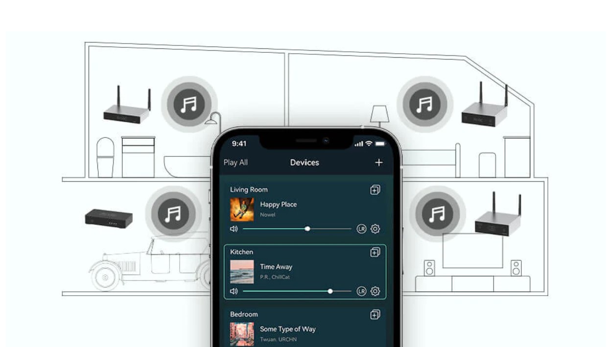 Combinați și potriviți orice dispozitive All Audio Stream pentru a crea un sistem multiroom personalizat și pentru a reda aceeași muzică în toată casa dumneavoastră, trimiteți surse diferite în fiecare cameră în același timp sau creați-vă propriile zone multiroom personalizate...