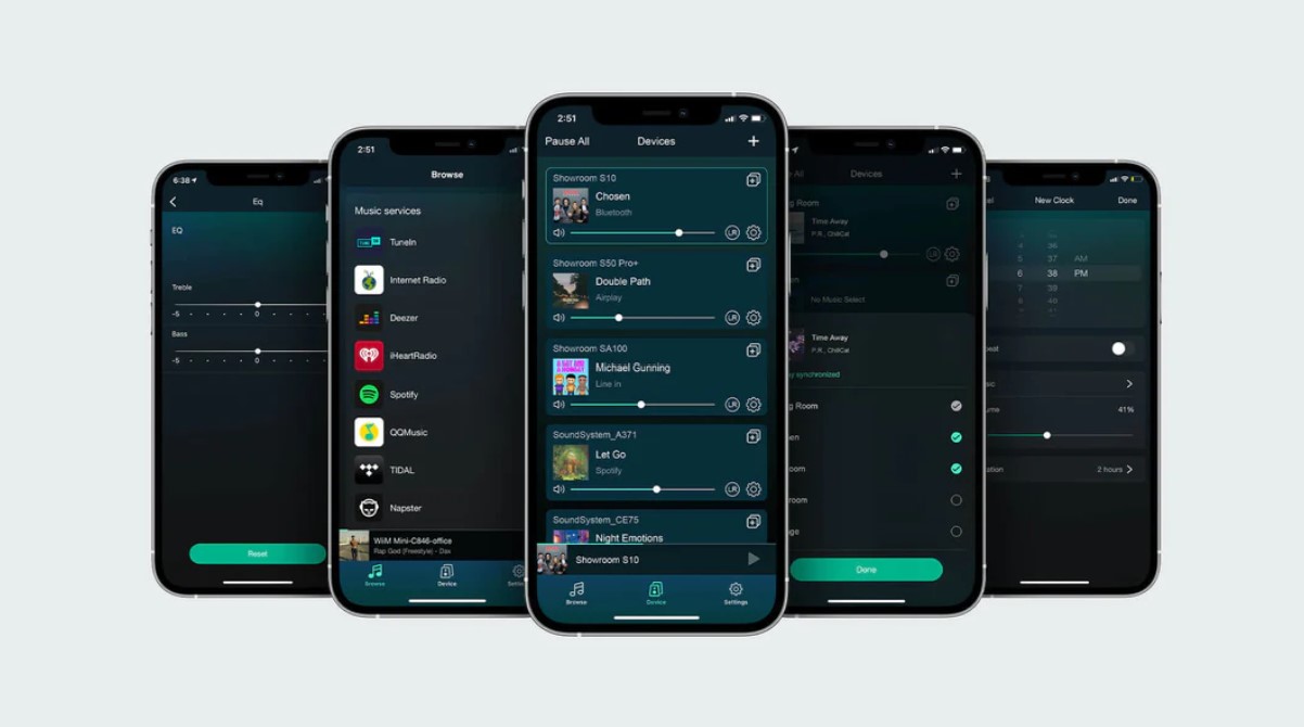 Alegeți-vă sursa pentru muzică și controlați redarea, setați EQ, controlați redarea multiroom/independentă, gestionați listele de redare, controlați ceasul cu alarmă, setările WiFi, actualizați firmware-ul și multe altele...